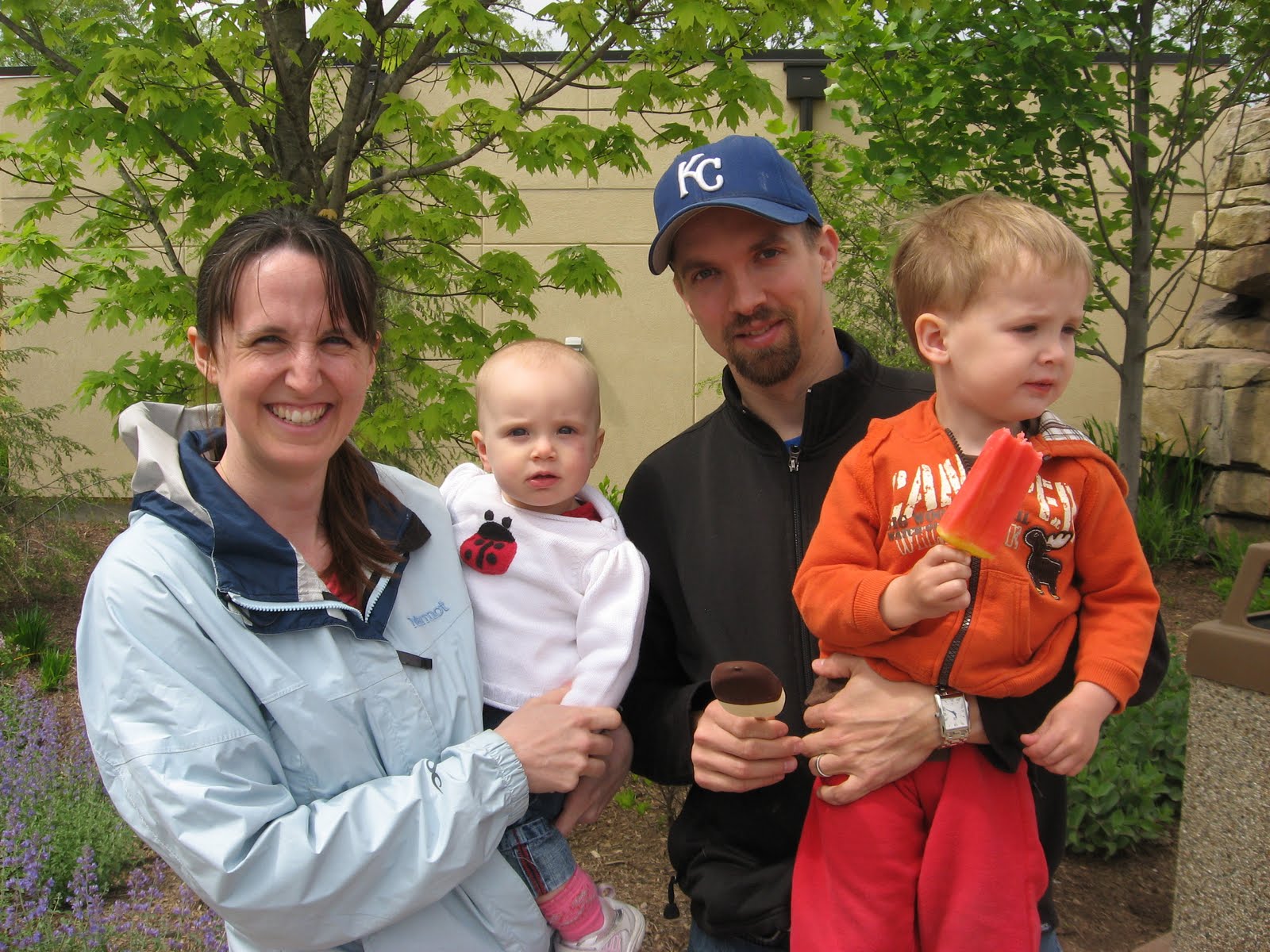 That night was pretty tough for Steven - he had the night sweats and I think a bad dream, probably from the fever. I wasn't looking forward to the ride home. We left at about 9:30am and the kids fell asleep before we even left the neighborhood. I made it all the way to Iowa without stopping, so I decided to take them for a picnic at a pretty nice rest area with a visitor center. Steven was very excited for the picnic but not really interested in eating. Lyla was a hoot - she would toddle around on the sidewalk but didn't want to even touch the grass. It was great, an automatic fence!